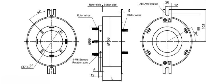 stator and rotor for simplified electrical connections.It can transmit signal(2A), 10A, multiple 10A