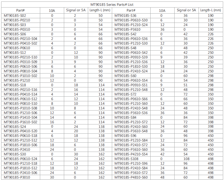 MT90185 series are standard, off-the-shelf products, Color-coded lead wires are used onboth the