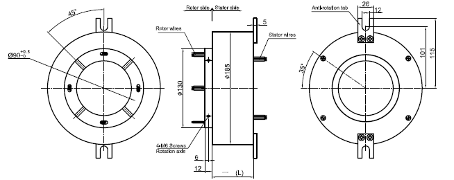 stator and rotor for simplified electrical connections.It can transmit signal(2A), 10A, multiple 10A