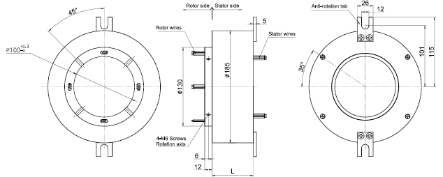 stator and rotor for simplified electrical connections.It can transmit signal(2A), 10A, multiple 10A