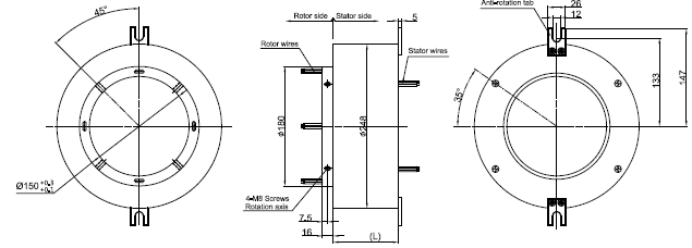 stator and rotor for simplified electrical connections.It can transmit signal(2A), 10A, multiple 10A
