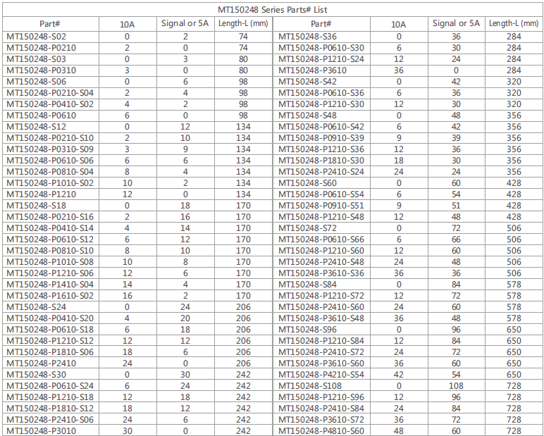 MT150248 series are standard, off-the-shelf products, Color-coded lead wires are used onboth the