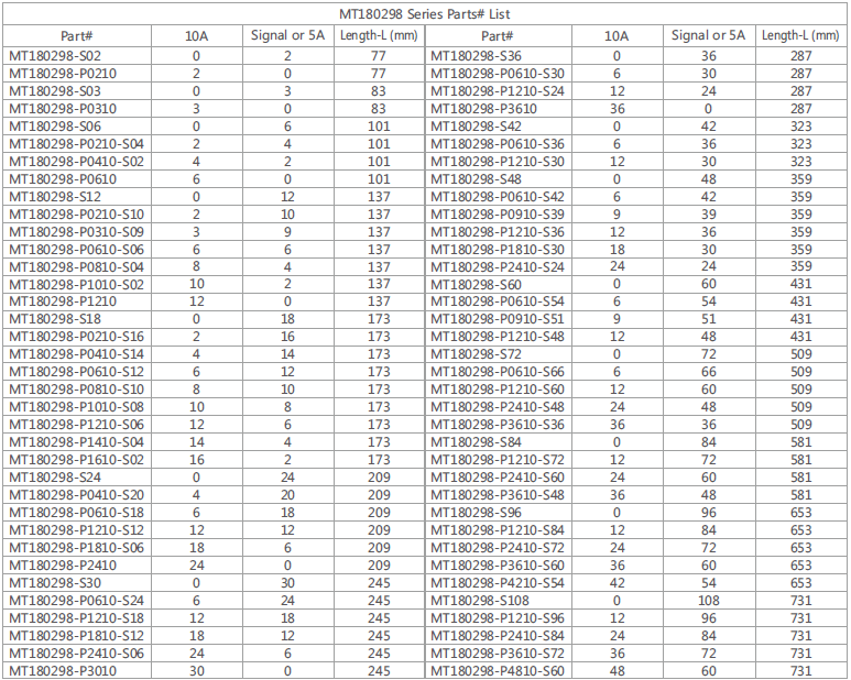 MT180298 series are standard, off-the-shelf products, Color-coded lead wires are used onboth the