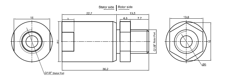MK11A series single channel rotary joint, interface size G1 / 8 ", compact structure, light weight, corrosion resistance, stainless steel shaft and