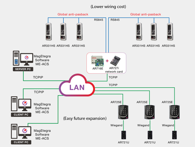 Local Area Network or multi-door controller. The more readers you have,