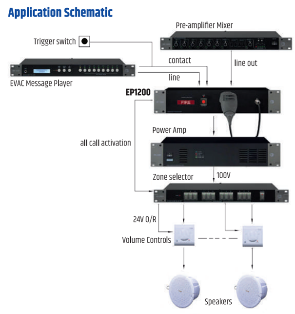 Priority sequence | Paging mic -siren -message -pre amp in |