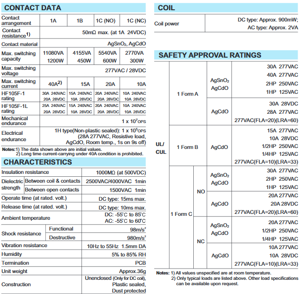 HONGFA HF105F-1/005D-1DSTF MINIATURE HIGH POWER RELAY