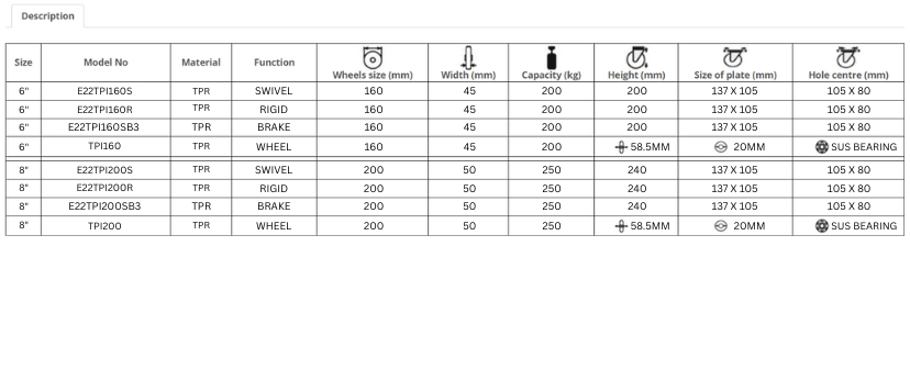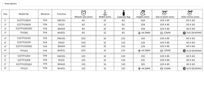DENLY Medium Duty Top Plate Stainless Steel TPR Castor - E22TPI100S (SIZE 3",4",5",6" & 8")