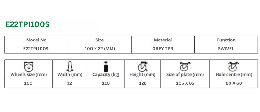 The DENLY Medium Duty Stainless Steel TPR Castor combines hygiene, durability, and smooth movement in one design. Built with a rust-resistant stainless steel frame and a non-marking grey TPR (Thermoplastic Rubber) wheel, it ensures quiet, floor-friendly performance in clean and wet environments. The secure top plate mount provides stability for medium-duty equipment and carts.