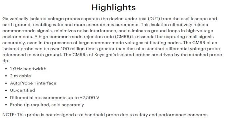 KEYSIGHT PS0008A Optically Isolated Differential Probe, 1 GHz, 2-meter