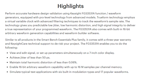 KEYSIGHT FG33531A Waveform Generator, 100 MHz,One-Channel
