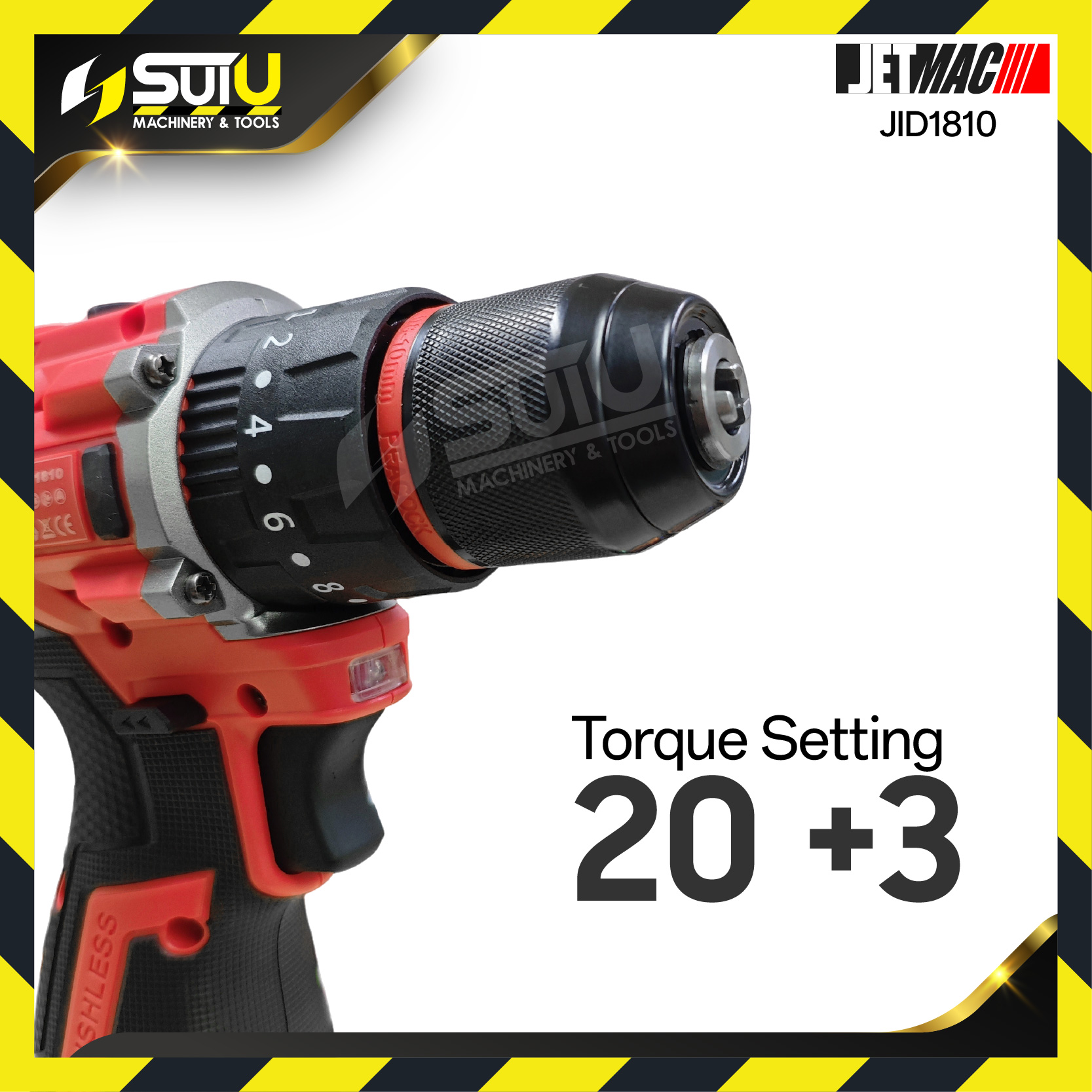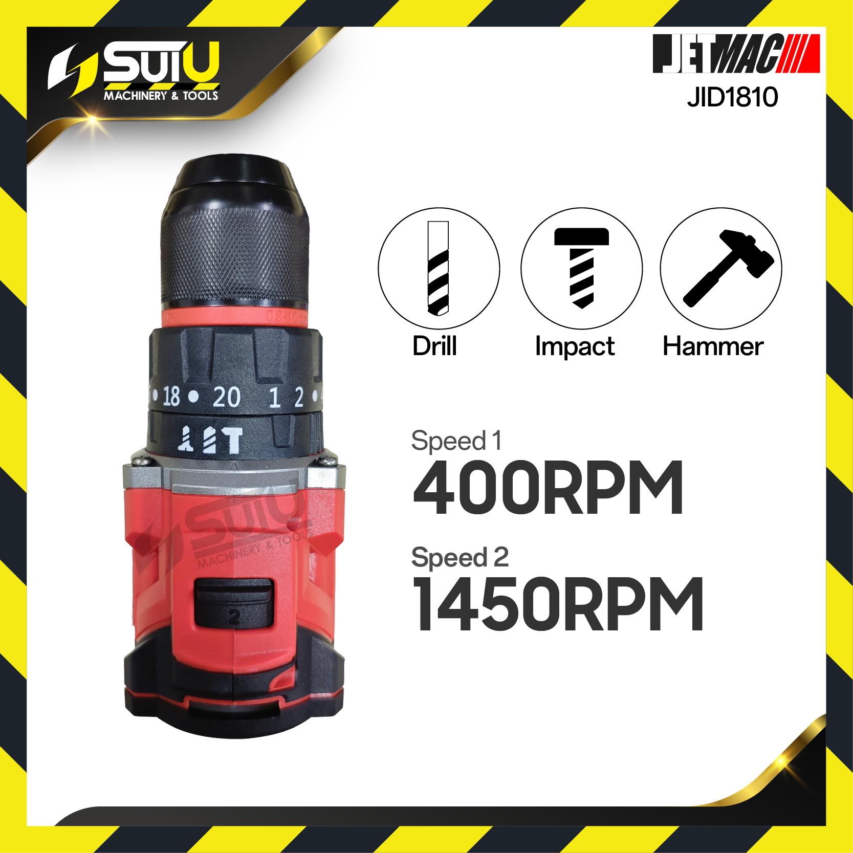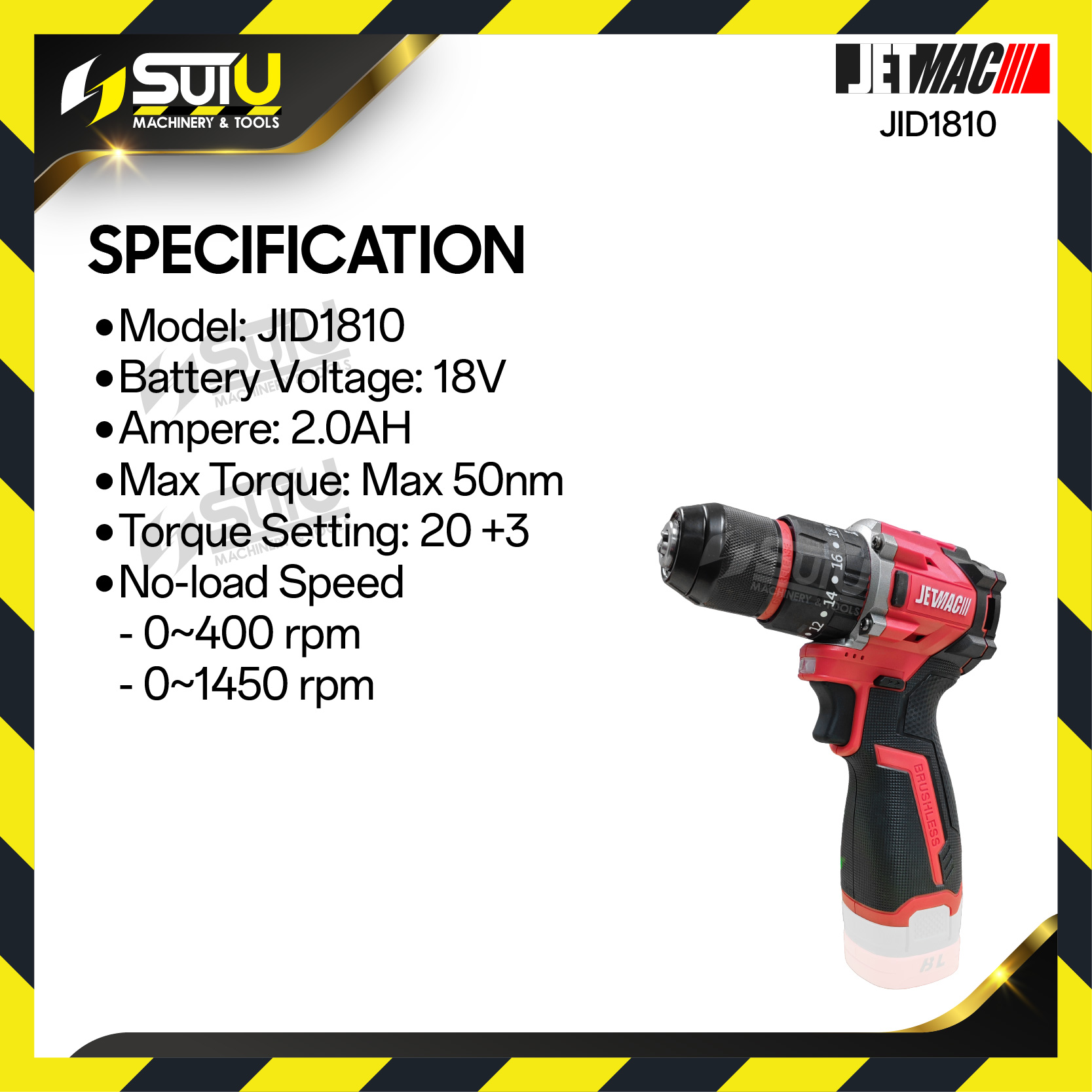 JETMAC JID1810 18V 50NM Cordless Impact Drill w/ 2 Batteries 2.0Ah + 1 x Charger