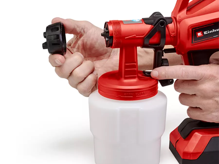 Wave goodbye to streaks!With the Einhell cordless paint sprayer TC-SY 18/60 Li-Solo, painting is a breeze! Thanks to the delivery rate of 650 ml per minute and the integrated paint quantity regulation, the held paint spray system is perfect for spraying small and medium-sized areas with paints, glazes, detergents and impregnating agents as well as oils without cable binding and thanks to softsrip, the 18V Power X-Change device sits perfectly in the hand and allows an infinitely large range of action.