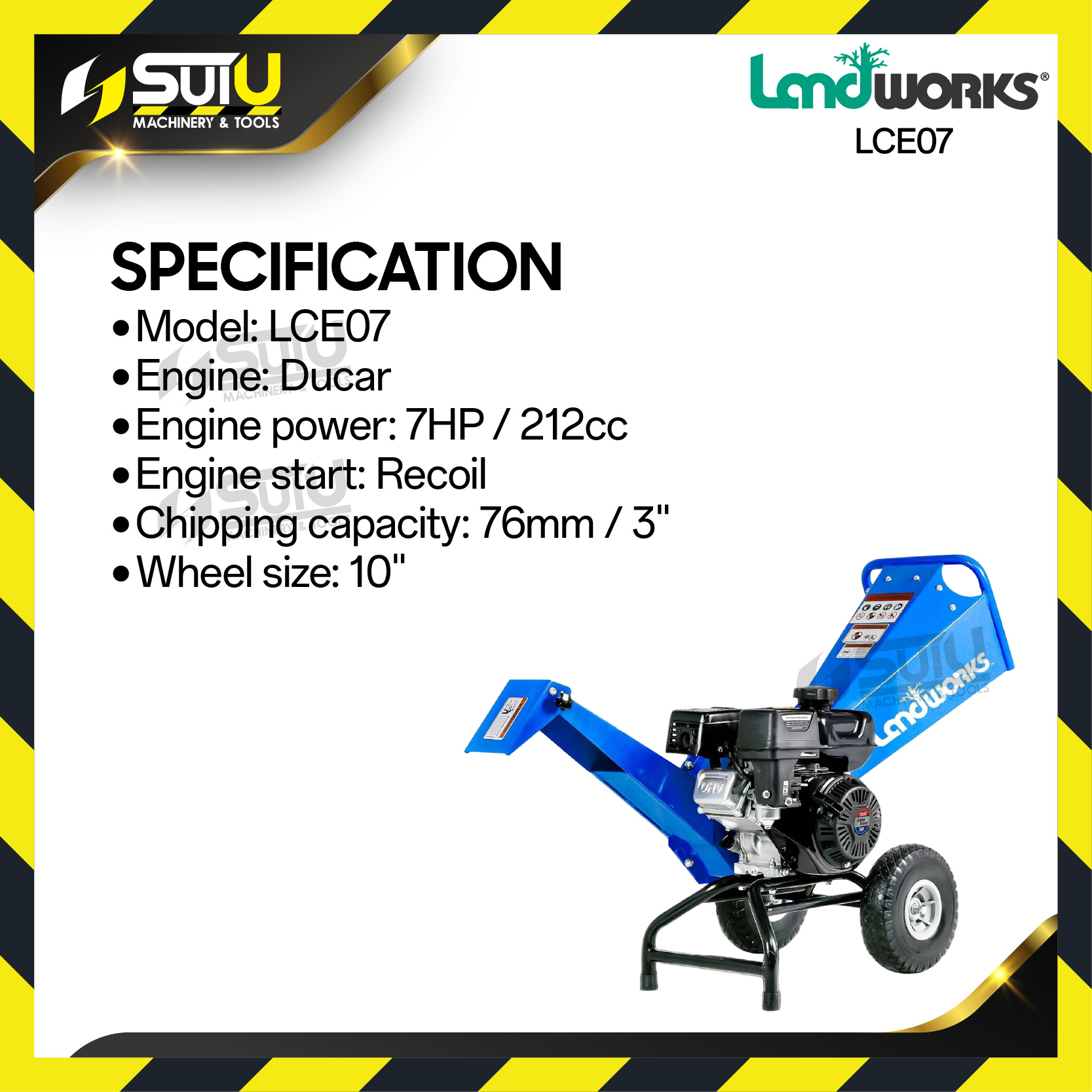 LANDWORKS LCE07 212CC 7HP 3" Wood Chipper w/ Ducar Engine