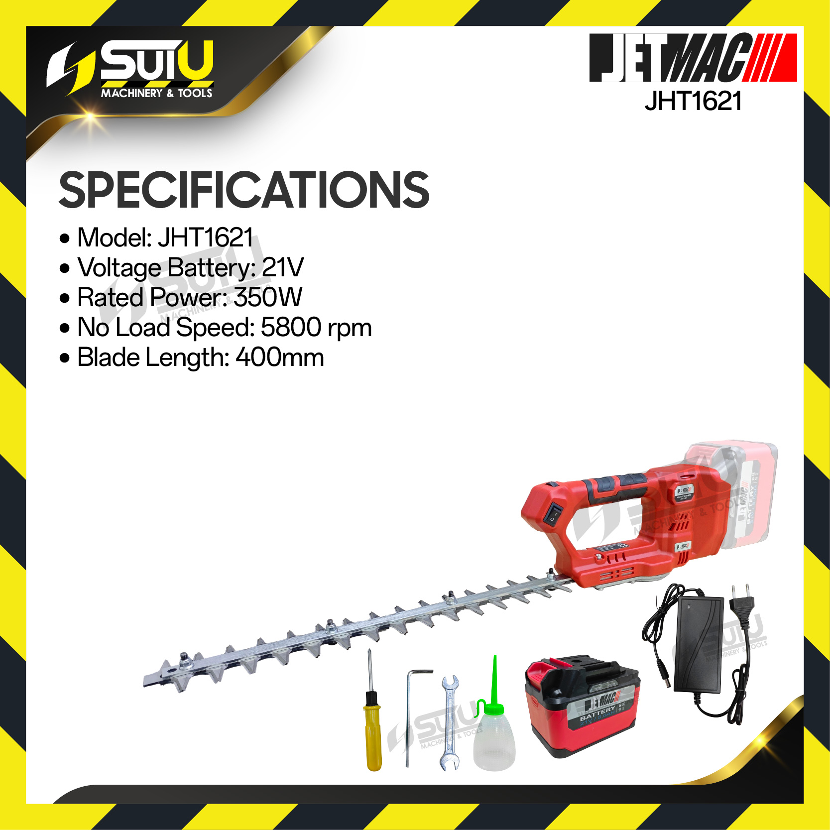 - 1 x JETMAC JHT1621 Cordless Hedge Trimmer (Machine only)