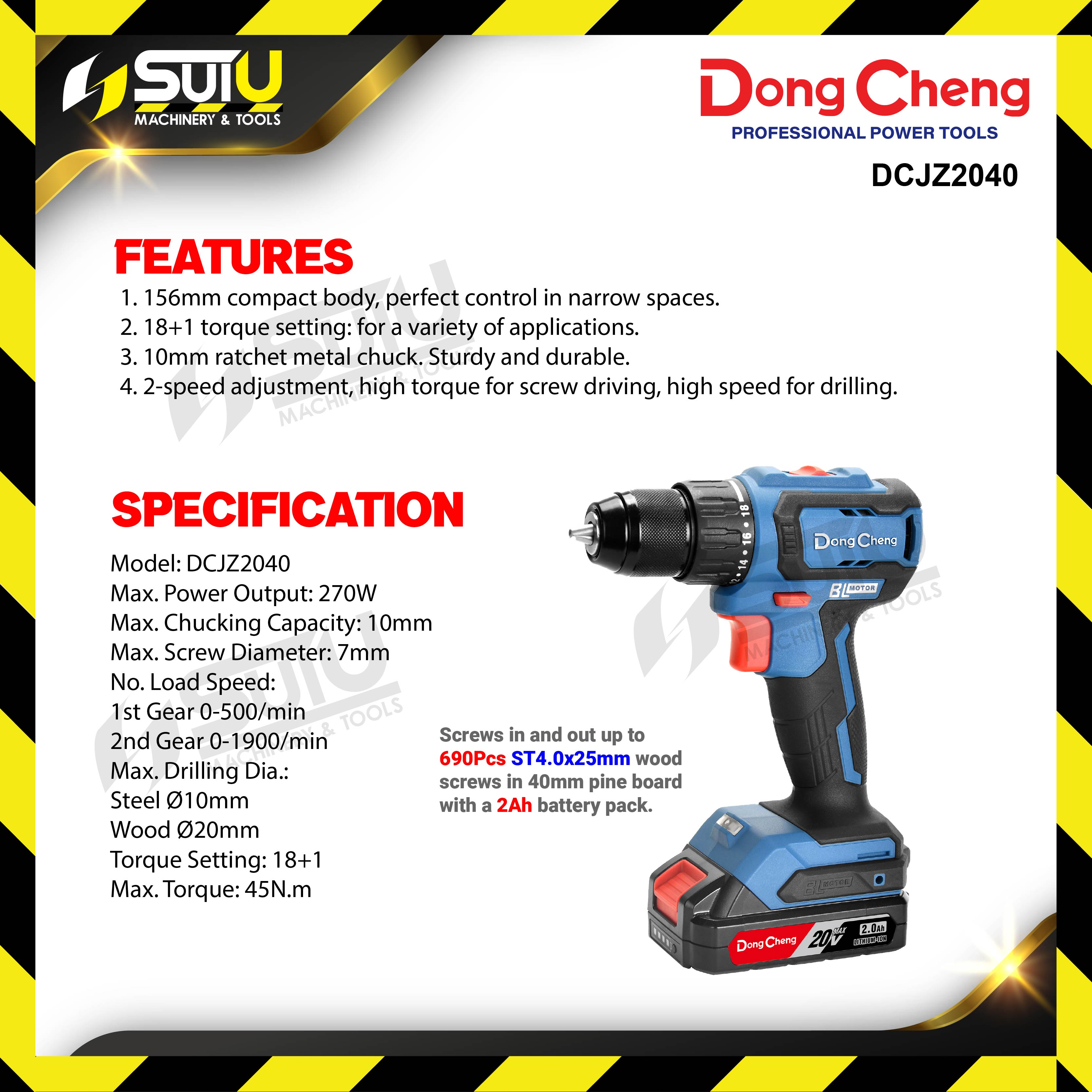 - 1 x DCJZ2040 Cordless Driver Drill (SOLO / Machine only)