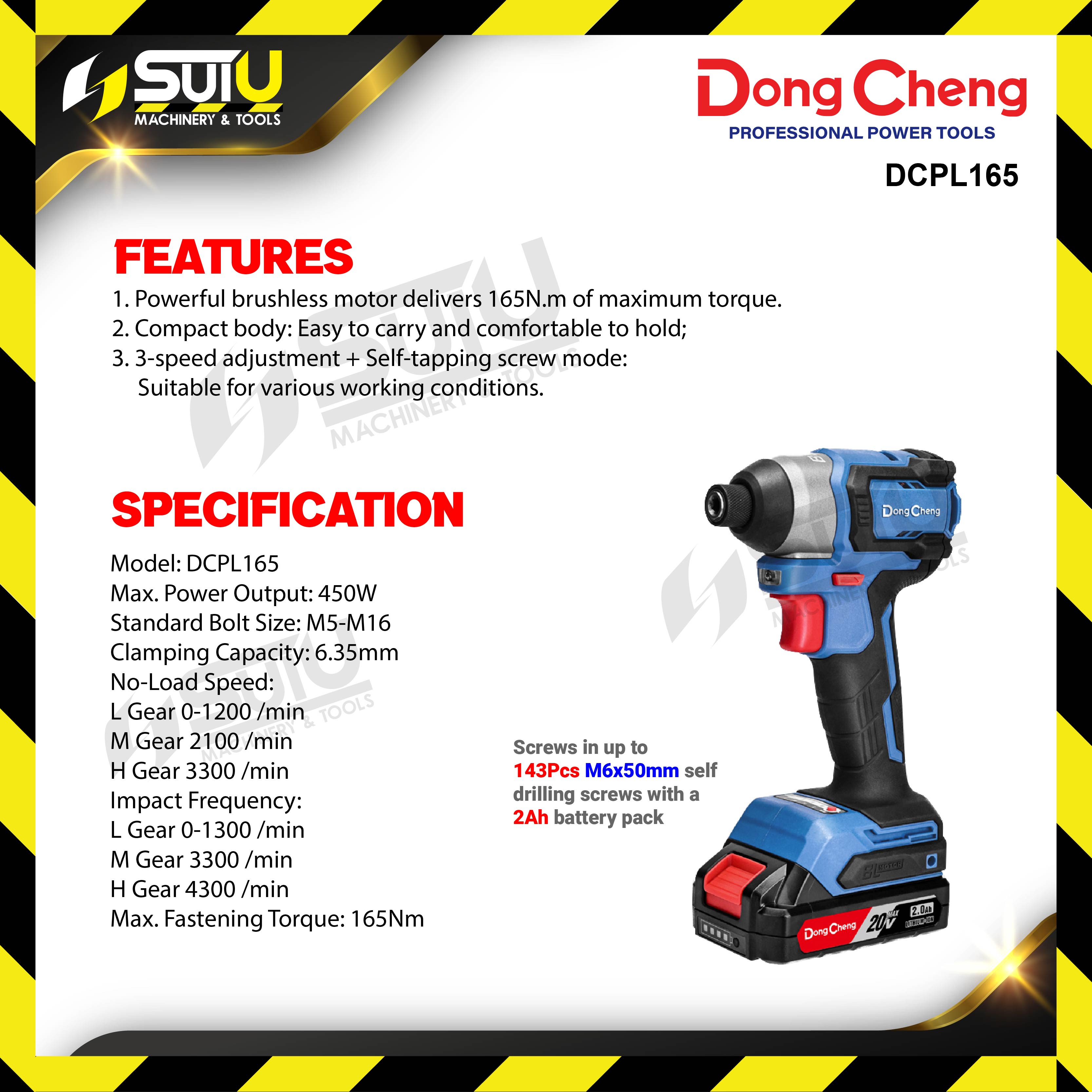 - Powerful brushless motor delivers 165NM of maximum torque