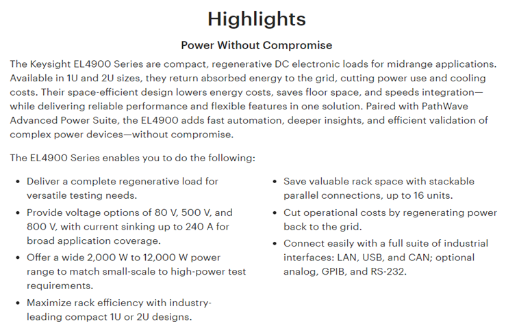 KEYSIGHT EL4900 Series Regenerative Electronic Loads