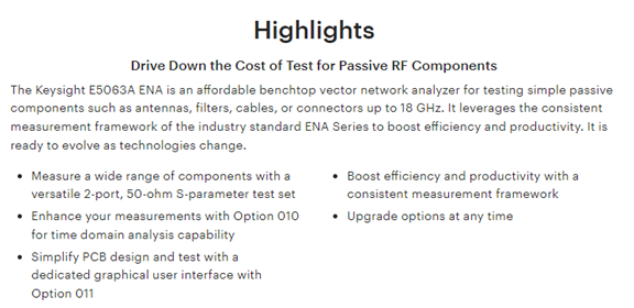 KEYSIGHT E5063A ENA Vector Network Analyzer