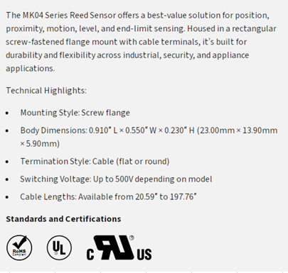 Standex-Meder MK04-1A66E-500W Reed Sensor