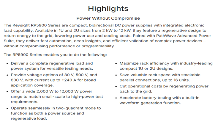 KEYSIGHT RP5900 Series Regenerative Power Supplies