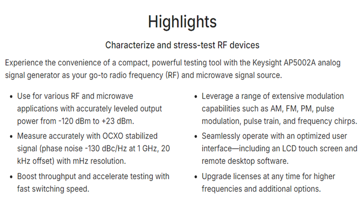 KEYSIGHT AP5002A Analog Signal Generator, 9 kHz to 26 GHz