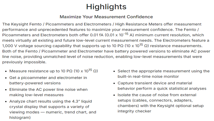 KEYSIGHT B2980 Series / Femto Picoammeter and Electrometer Meters