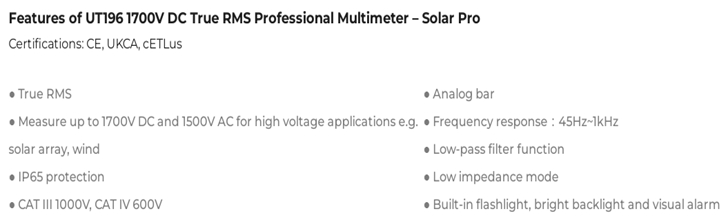 UNI-T UT196 1700V DC True RMS Professional Multimeter – Solar Pro