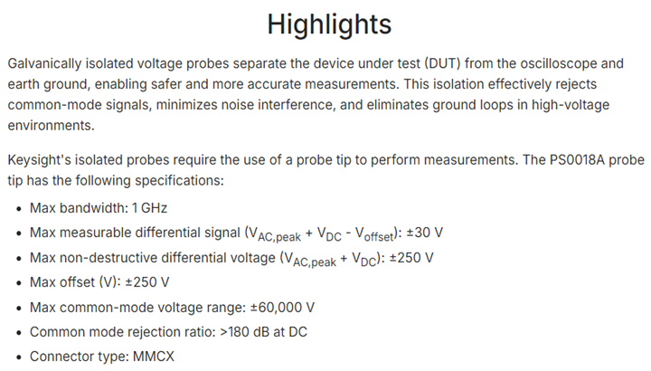 KEYSIGHT PS0018A Isolated Probe Tip, ± 30V, MMCX