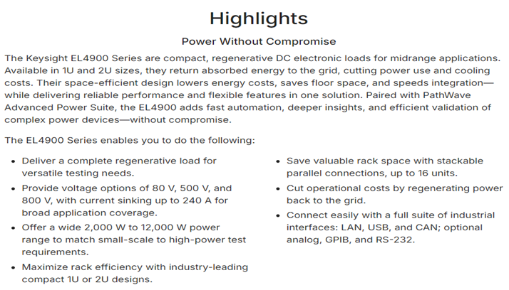 KEYSIGHT EL4900 Series Regenerative Electronic Loads
