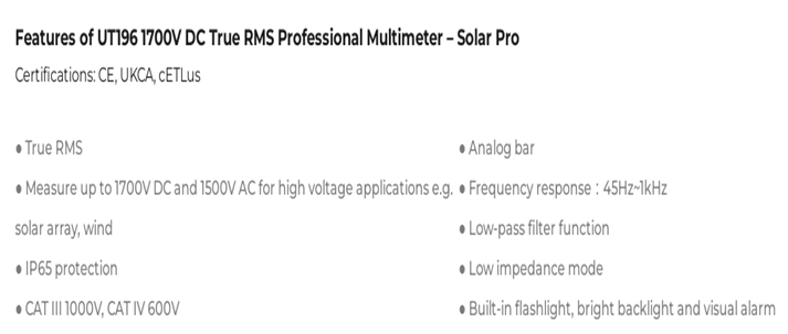 UNI-T UT196 1700V DC True RMS Professional Multimeter – Solar Pro