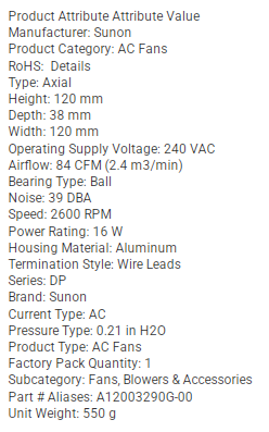 SUNON DP202A-2123MBL FAN AC Fan Series