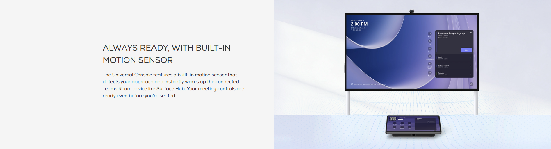 Finally, a console that understands your meeting needs. Designed to perfectly integrate with your Surface Hub 3 and Microsoft Teams, this console delivers comprehensive, one-touch control over every meeting function, ensuring seamless content sharing, effortless participant management, and crystal-clear communication. Experience meetings as they were meant to be – productive, dynamic, and universally simple.
