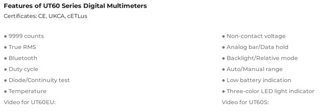 UNI-T UT60 Series Digital Multimeters