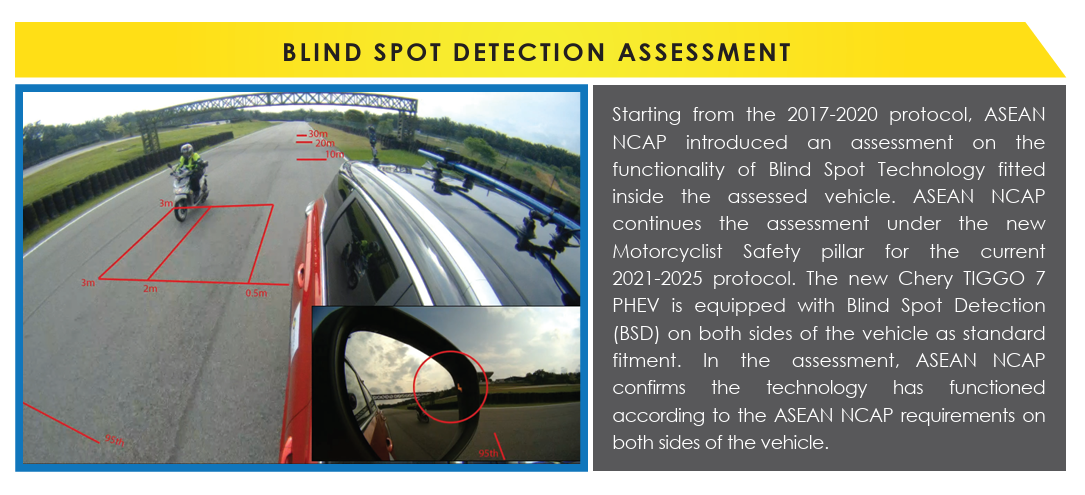 The Chery Tiggo 7 PHEV has received a 5-star safety rating from ASEAN NCAP, scoring an excellent 94.68 points under the 2021–2025 testing standards The SUV performed well in crash tests, showing strong protection for both the driver and passengers. ASEAN NCAP confirmed that the vehicle remained stable during a frontal crash and offered good overall occupant protection Safety is a strong point for the Tiggo 7 PHEV, as all variants come with eight airbags, ESC, ABS, and seatbelt reminders for all seats, including the rear. For families, the SUV also includes ISOFIX child seat mounts and child presence detection to help prevent children from being left behind in the vehicle The model is also equipped with many advanced safety features. These include Autonomous Emergency Braking (AEB) for city and highway driving, Blind Spot Detection, Lane Departure Warning, Lane Keep Assist, Forward Collision Warning, Auto High Beam, and AEB for motorcycles. ASEAN NCAP confirmed that these systems worked as intended during testing Tested for the Malaysia and ASEAN markets, the Chery Tiggo 7 PHEV’s strong results in both crash protection and safety technology earned it the maximum 5-star ASEAN NCAP rating, highlighting its focus on safety for everyday drivers and families