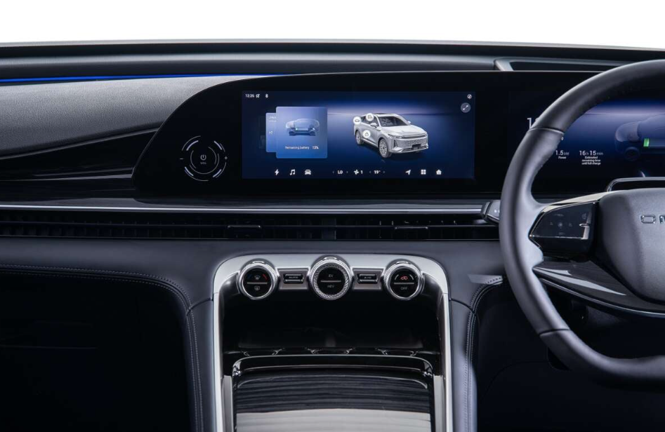 Inside, the C9 PHEV offers a premium and high-tech cabin featuring dual 12.3-inch displays with a head-up display (HUD), a Sony 14-speaker sound system, and a 50W wireless charger. It also includes voice command via “Hello Omoda” and Android Auto connectivity, enhancing convenience and connectivity for drivers.