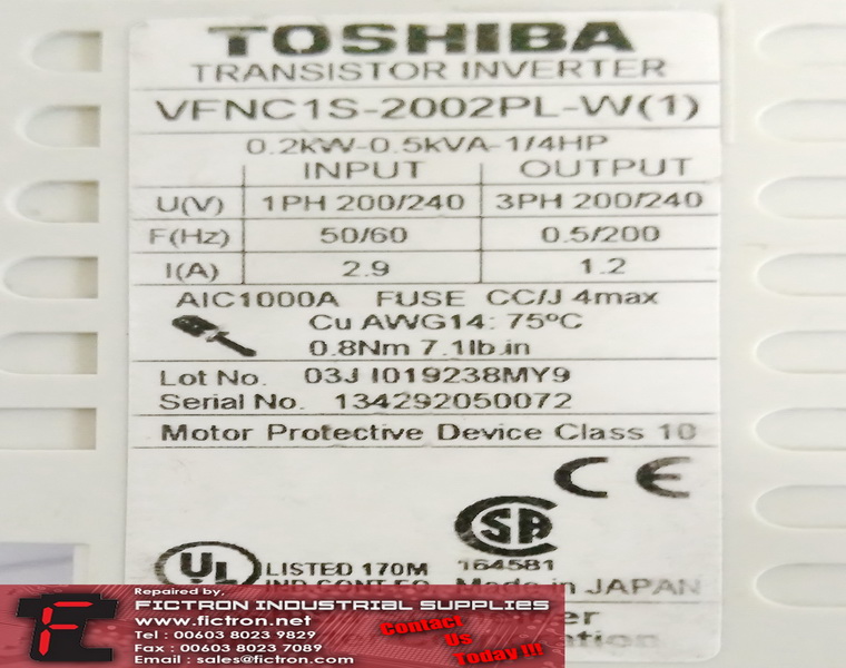 VFNC1S-2002P-W(3) VFNC1S2002PW(3) TOSHIBA 200W 0.5kVA Inverter Drive REPAIR MALAYSIA 1-YEAR WARRANTY