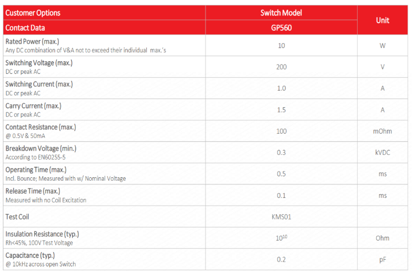STANDEX-MEDER KSK or SW GP560 SERIES REED SWITCH