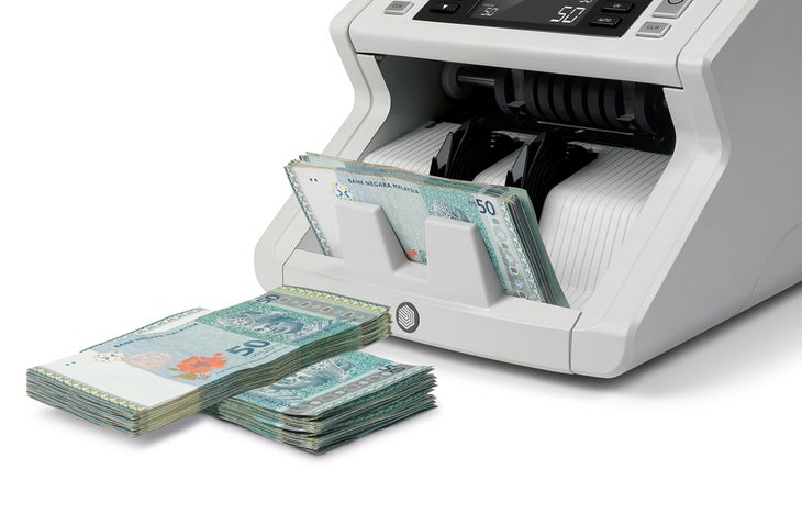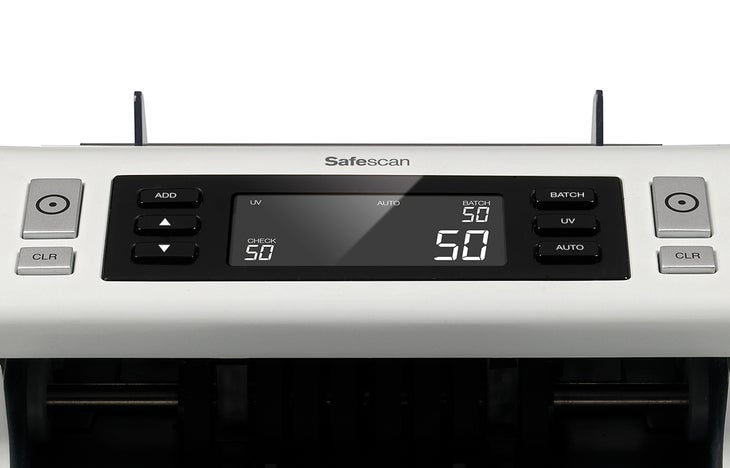 Today’s currencies are printed with sophisticated security features that make it hard for counterfeiters to succeed. The 2210 automatically checks every banknote for two distinct security traits: UV markings and bill size. It will pause and beep to alert you when it encounters a suspicious bill; simply remove the offender and press start to resume counting.