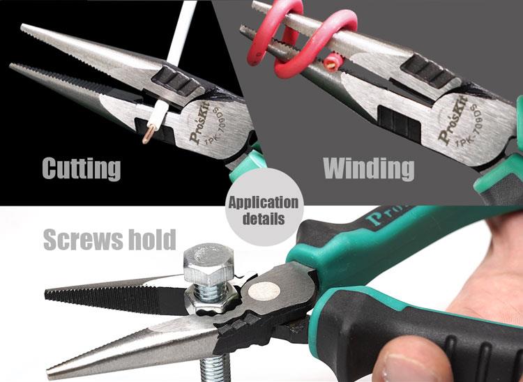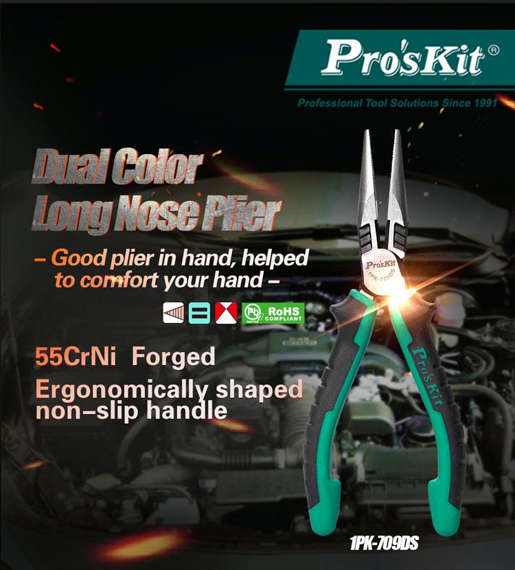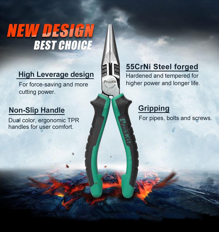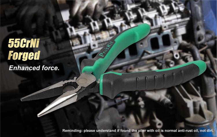 Dual Color Long Nose Plier(166mm): 55 Cr-Ni Forged High leverage design