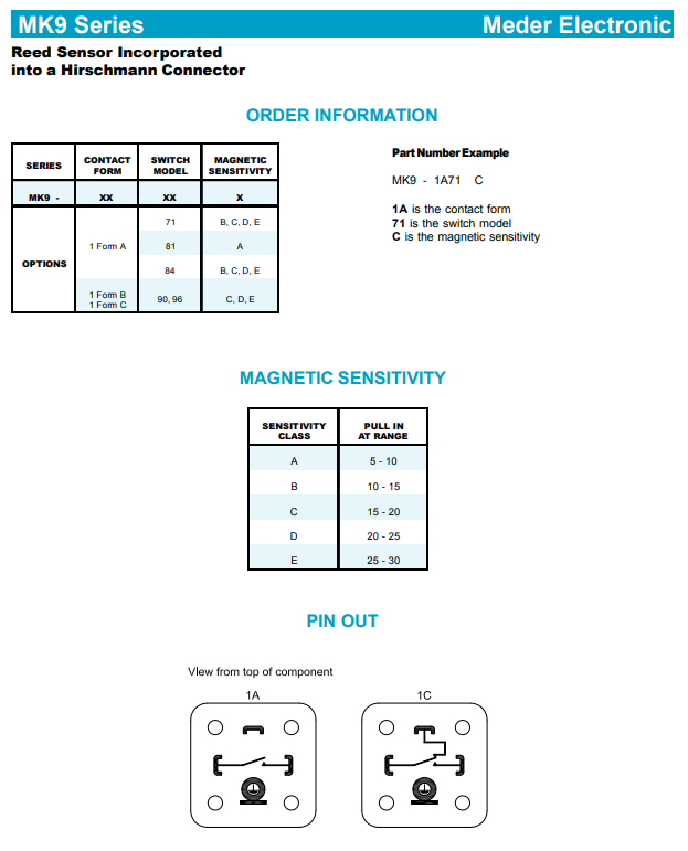 MEDER MK9-1B90-BV260 Reed Switch