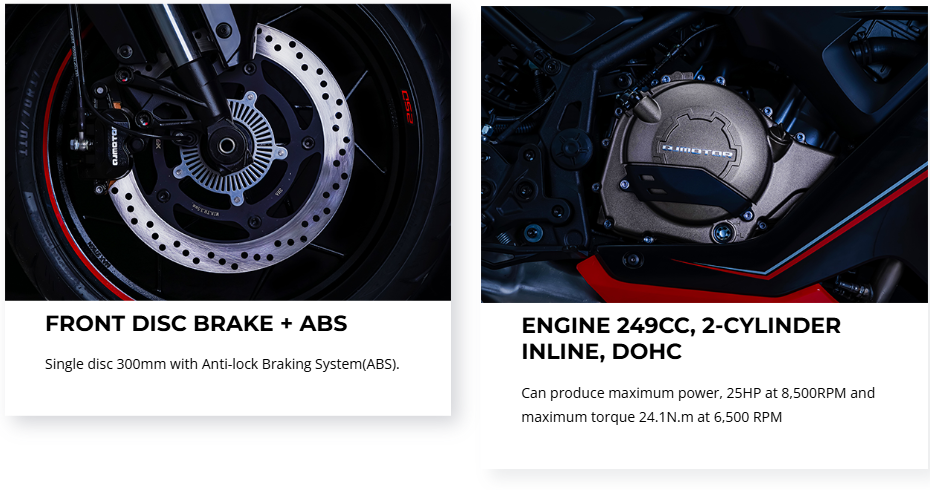 Type : 2-cylinder Inline, 4-stroke, 8 Valves, DOHC