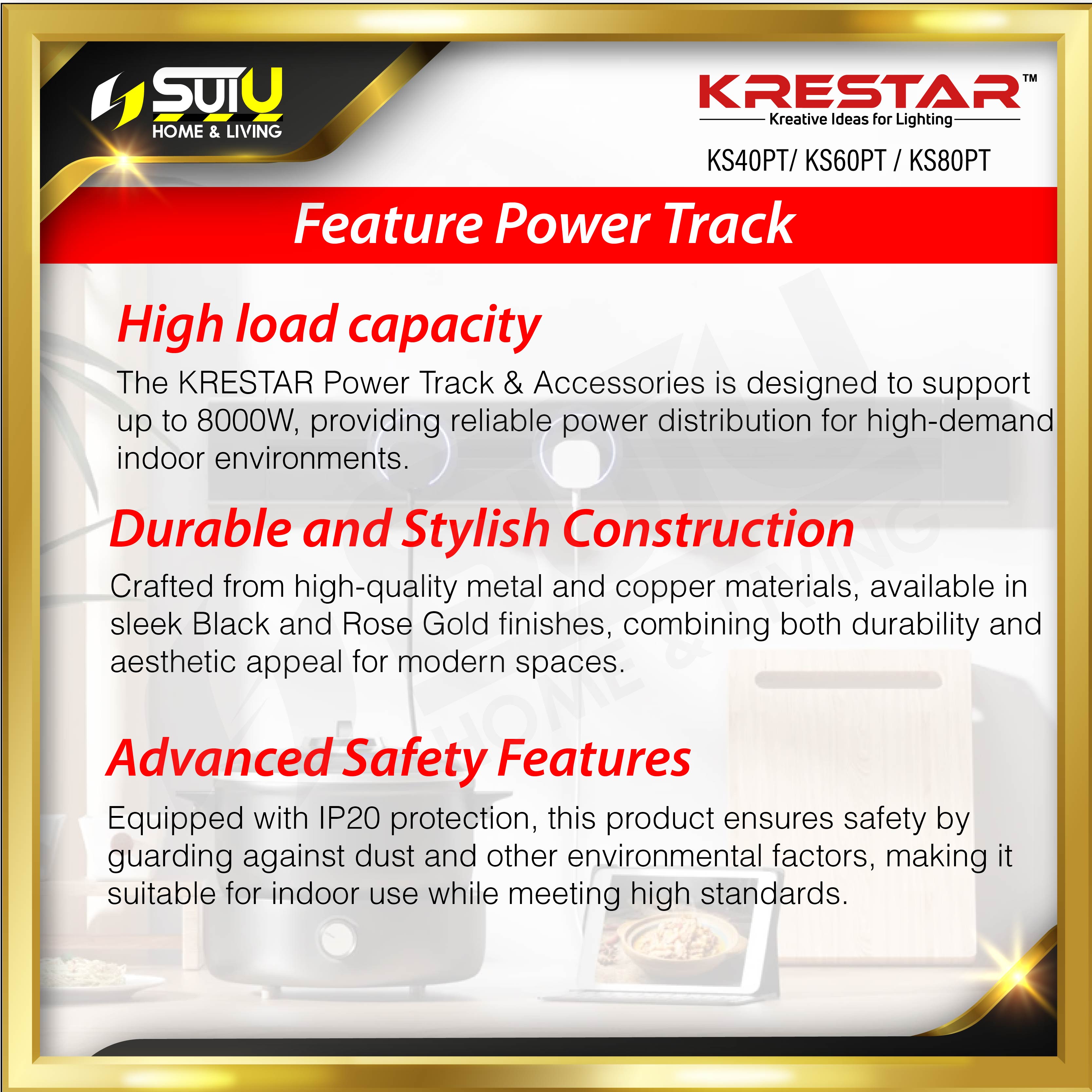 - The KRESTAR Power track & accessories to support up to 8000W providing reliable power distribution for high demand indoor environment