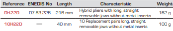 Constructed from high-performance insulating materials with reinforced conductive components, the DH22D hybrid design effectively protects against electric shocks and reduces the risk of short-circuiting between live parts at different potentials. The long, straight, serrated jaws ensure excellent reach and grip for working in tight or confined areas, while the removable jaw system allows for convenient replacement and maintenance.