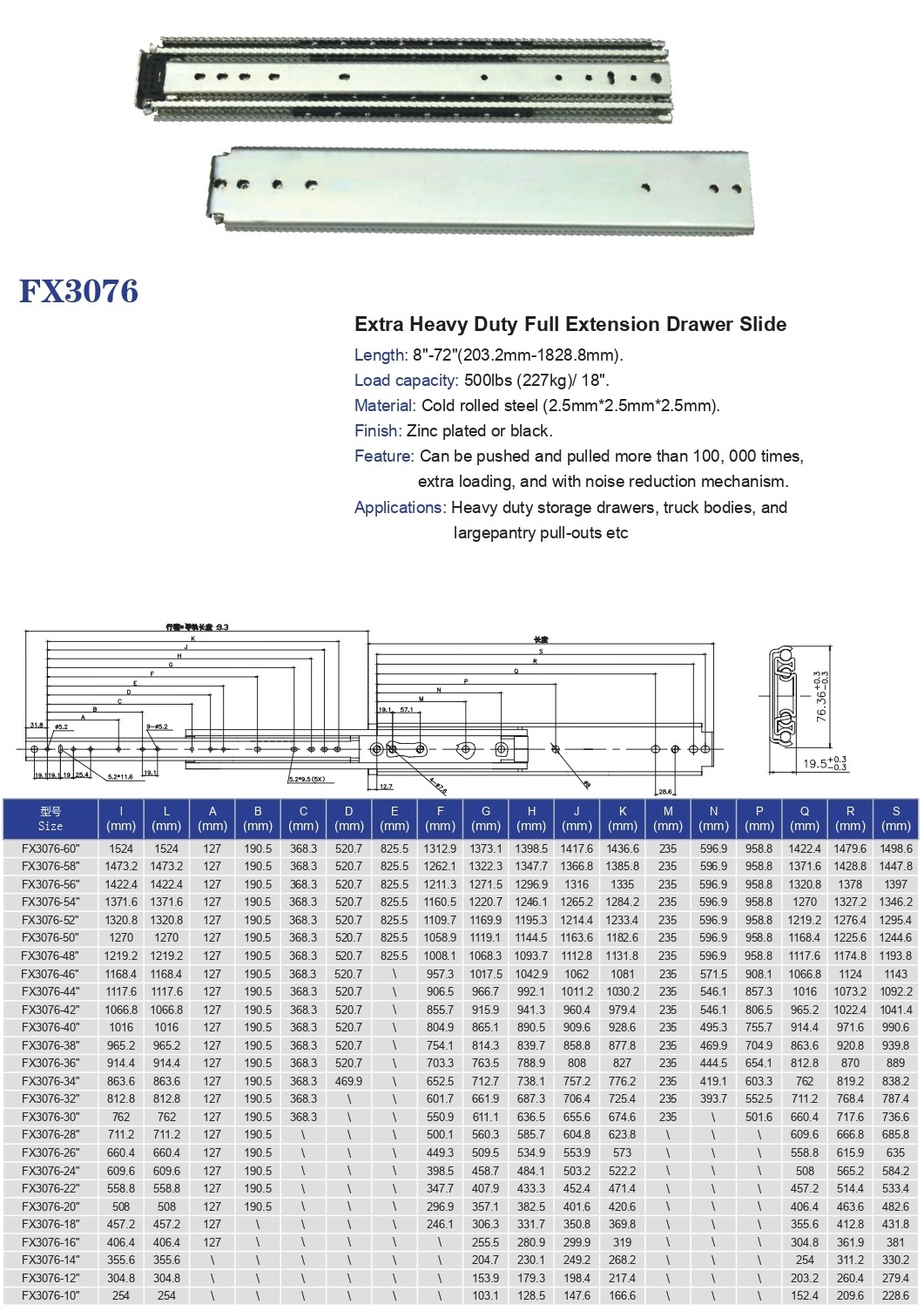 FX3076 Extra Heavy Duty Full Extension Drawer Slide