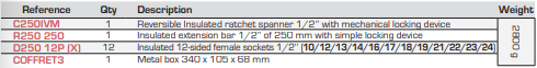 Ref: CC250I-3A (VM) Same composition as the CC250I-3A with R250VM 250 (extension bar with mechanical locking device) instead of R250 250.