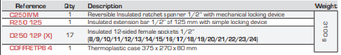 Ref: CC250I-P8F (VM) Same composition as the CC250I-P8F with R250VM 125 (extension bar with mechanical locking device) instead of R250 125