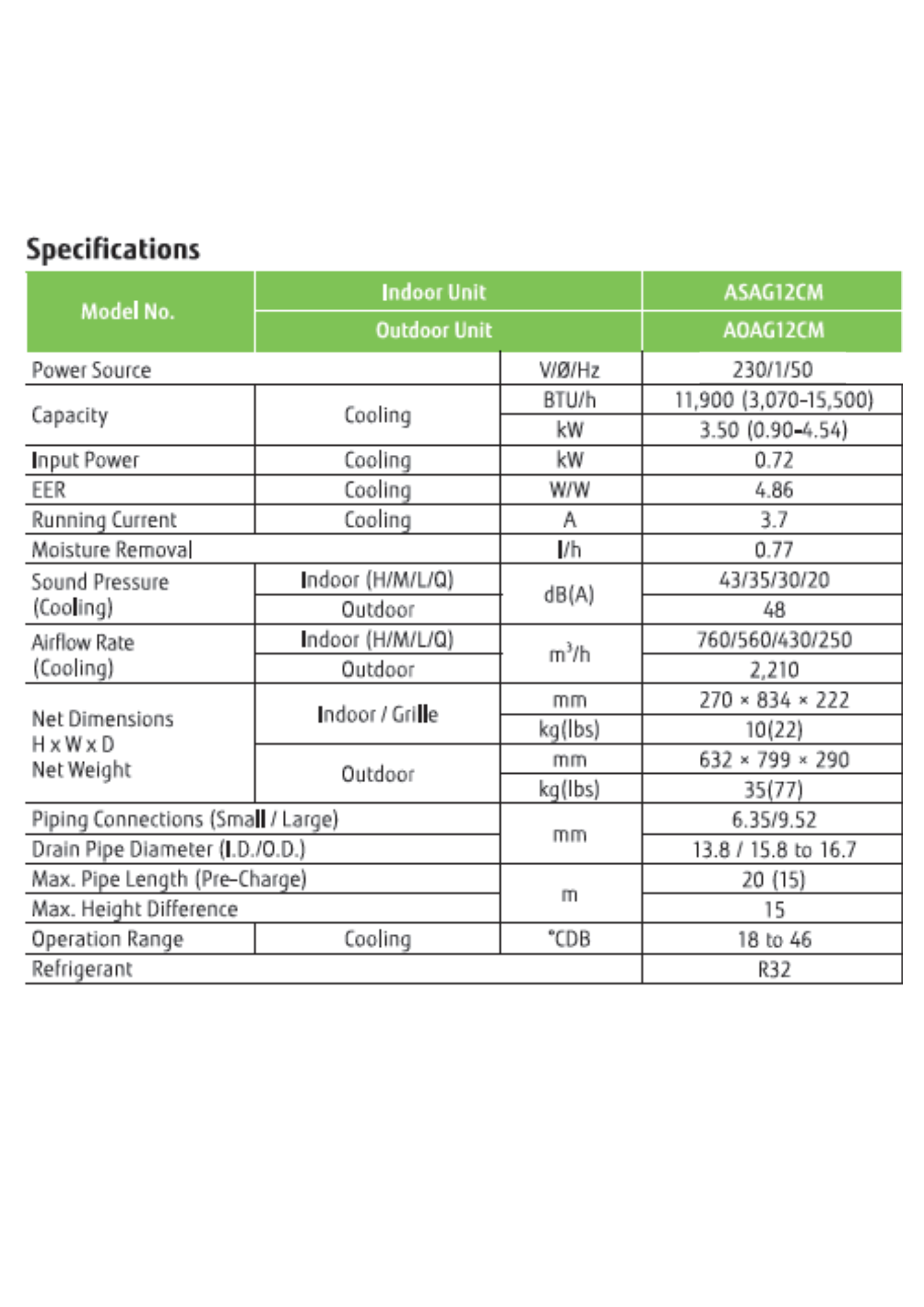 FUJITSU SINGLE SPLIT 12000 BTU ASAG12CM/AOAG12CM