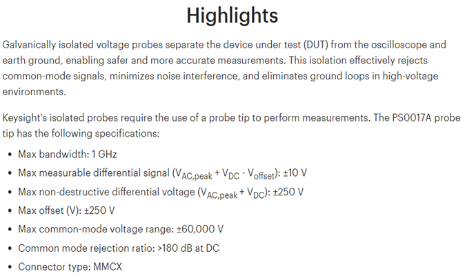 KEYSIGHT PS0017A Isolated Probe Tip, ± 10V, MMCX
