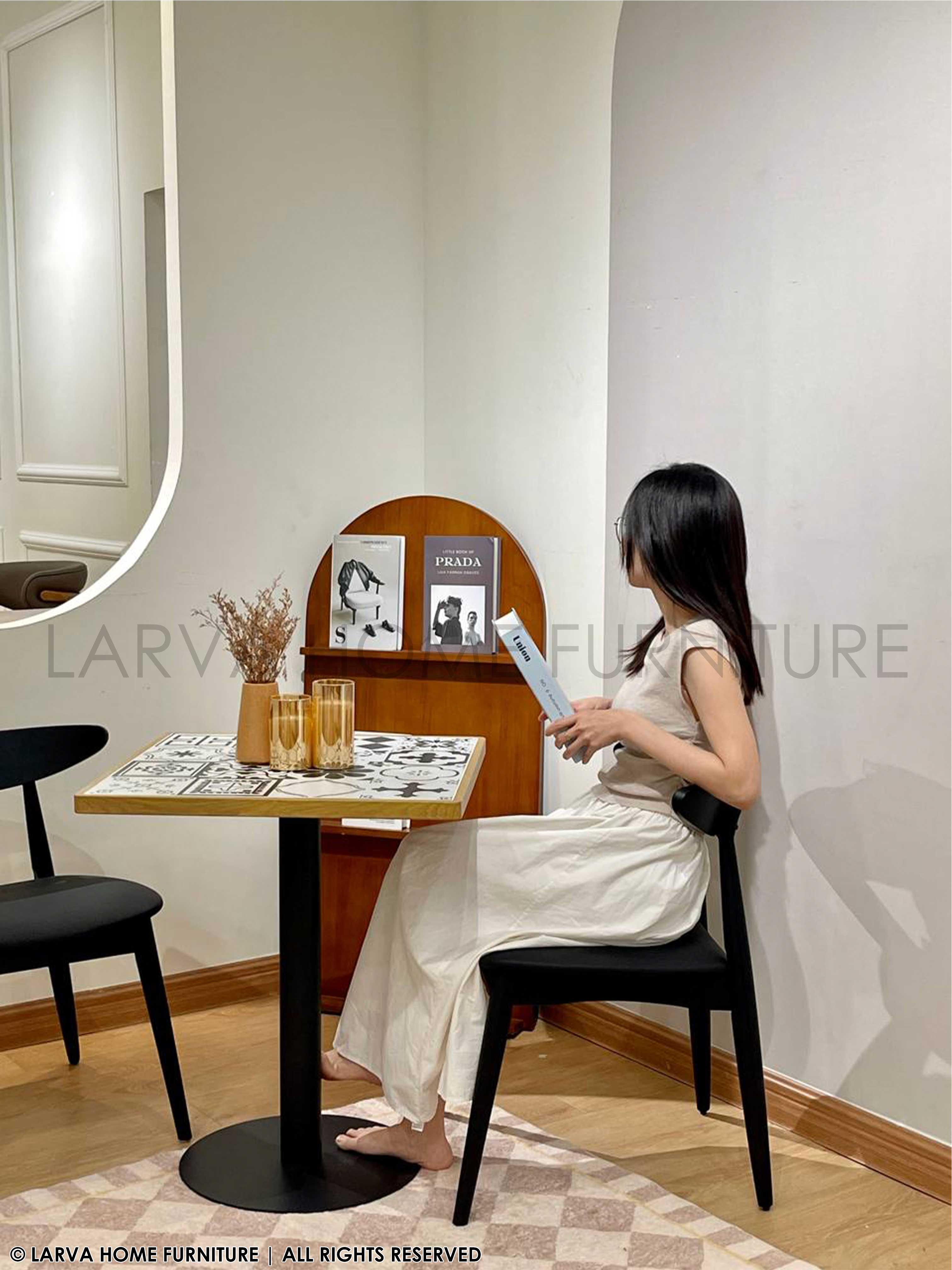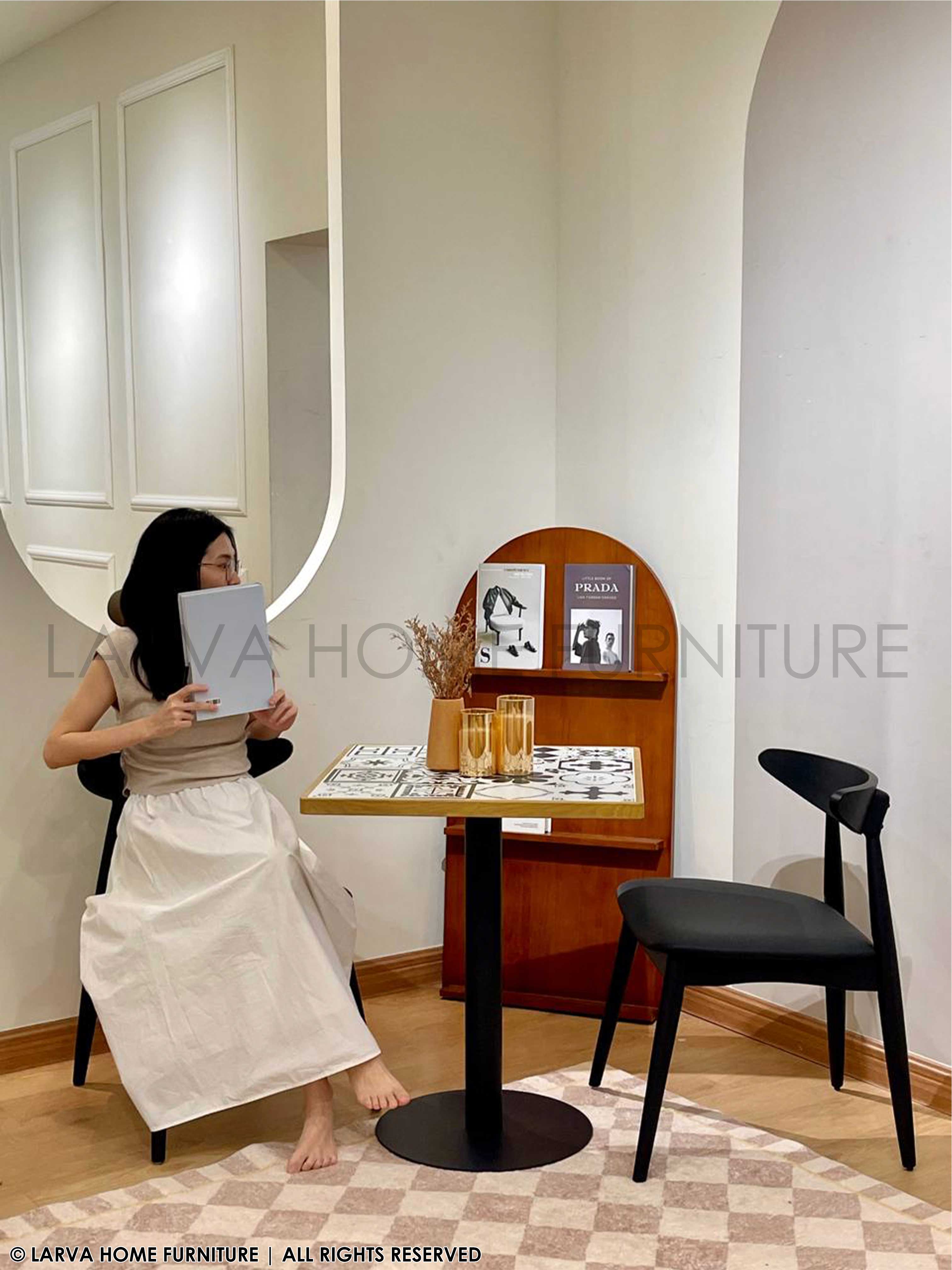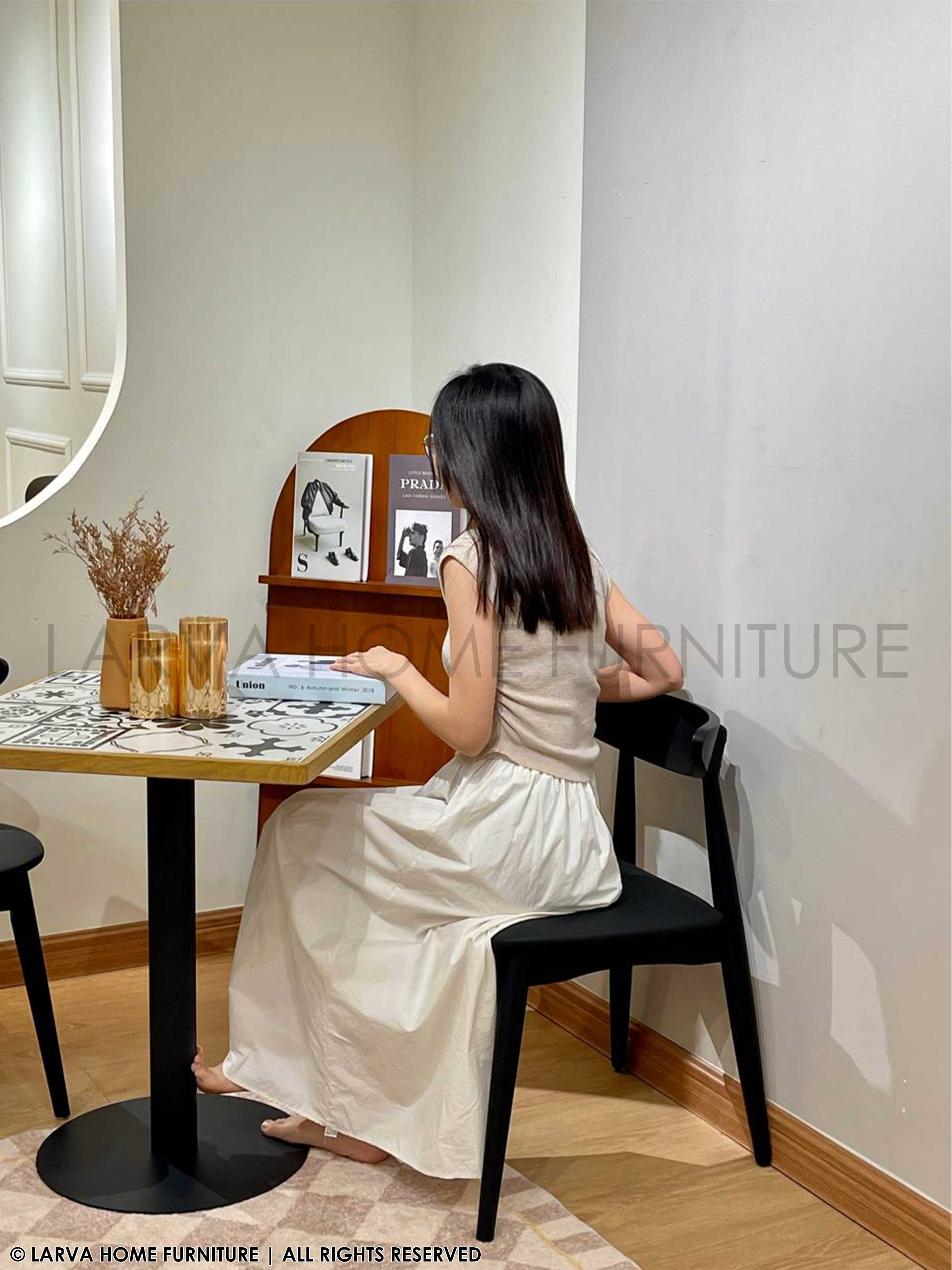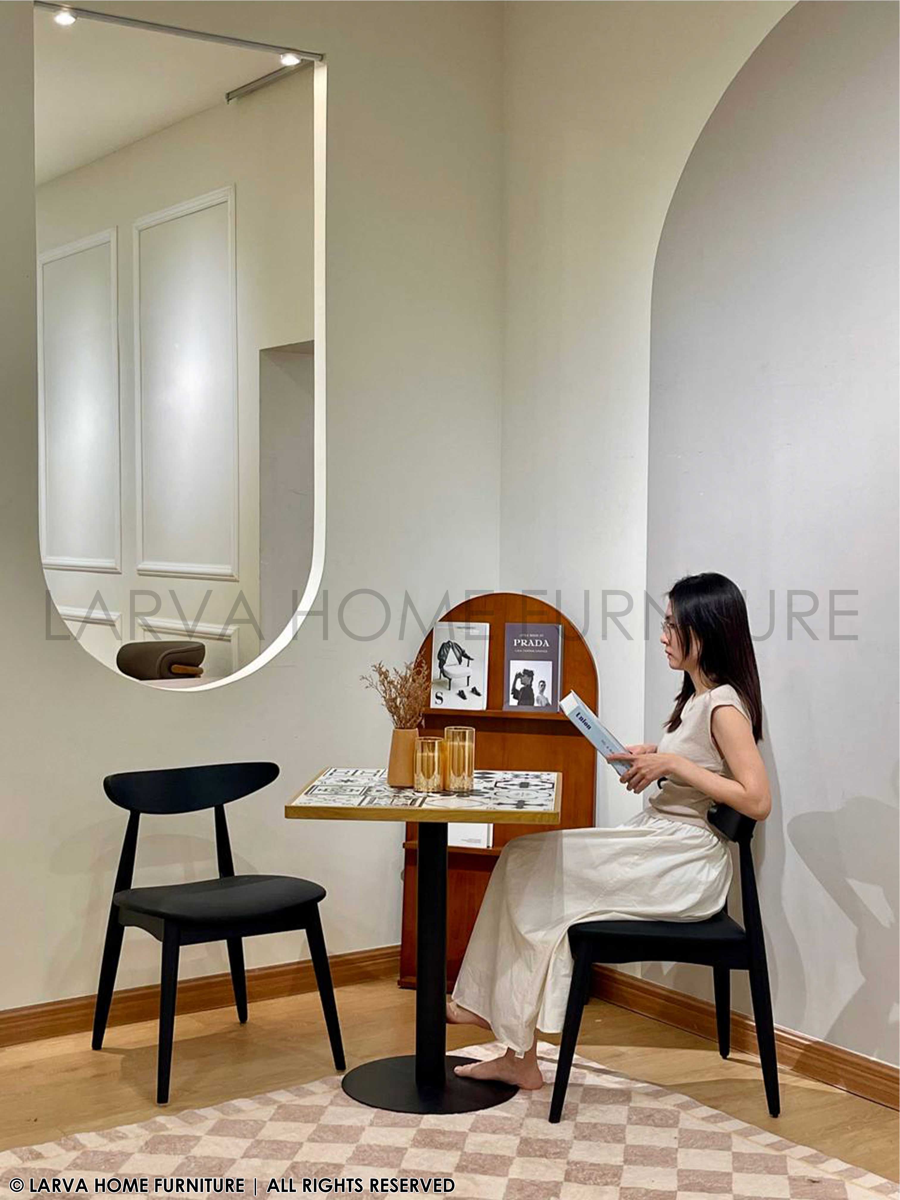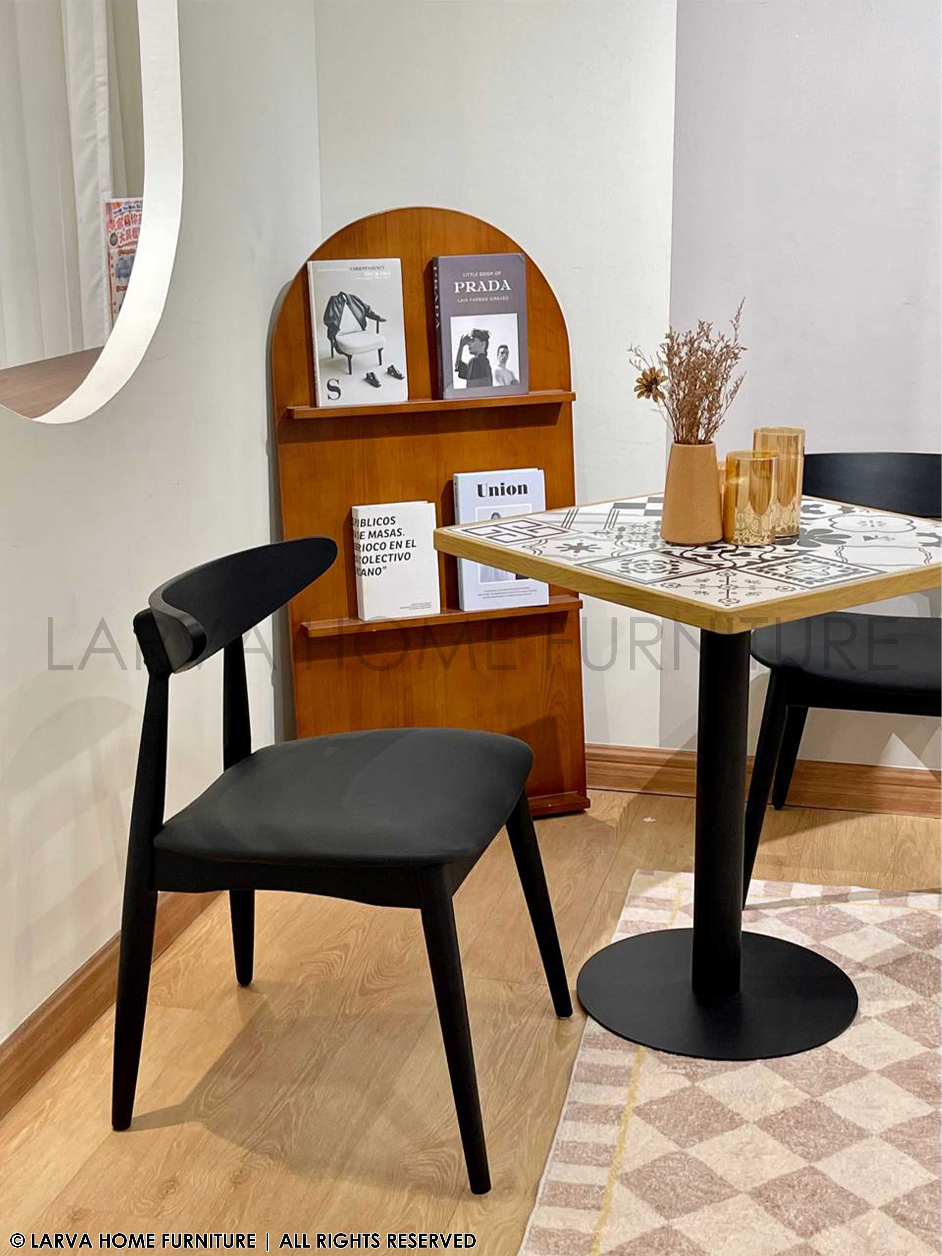 Make a bold statement with this sleek black Phil Designer Chair. The sculpted backrest and angled legs reflect modern craftsmanship at its finest. Built with comfort and aesthetics in mind, it fits seamlessly in any contemporary space. A must-have accent piece that combines artful design with everyday usability.